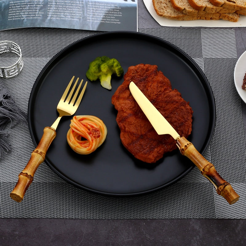 As peças não reagem a outros materiais e com isso não alteram ou retém o aroma e sabor dos alimentos. Além disso, o design do cabo em bambu dá um charme a sua decoração.