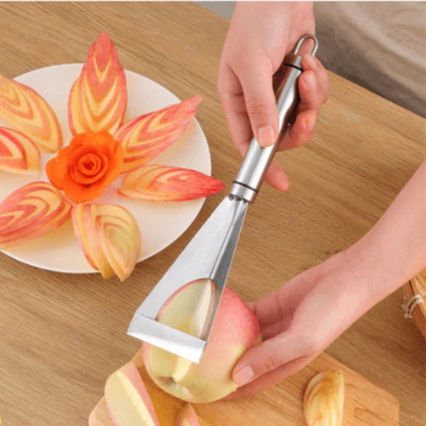 Multi-funções: Design exclusivo, as funções incluem escultura e descascamento. Uma ferramenta de cozinha prática e essencial que pode facilmente cortar maçãs, melancias, pepinos e outras frutas.