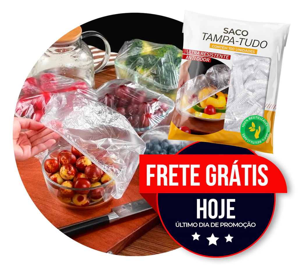 Ao contrário do plástico filme, os Sacos Veda-Tudo são reutilizáveis, basta lavar e usar novamente, não se preocupe com odores, pois é feito de um material que não retém odores.
