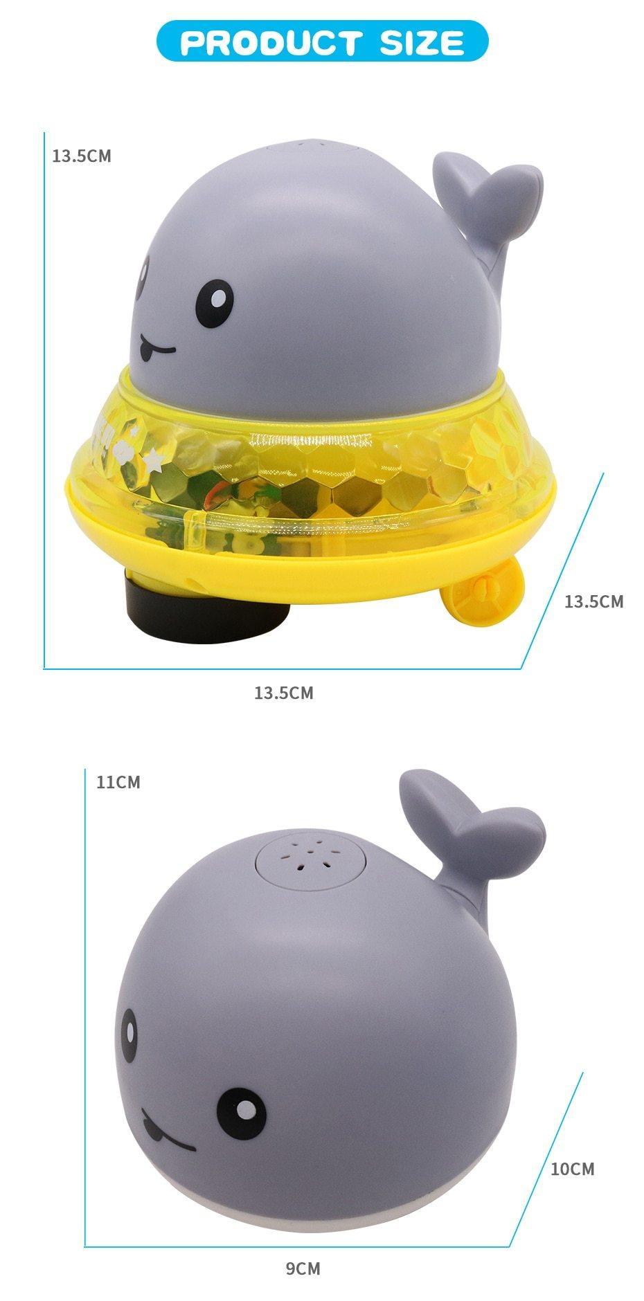 Sprinkler Whale Bath Toy é alimentado por 3 pilhas AAA (não incluídas). O brinquedo de banho possui função de sensor automático.